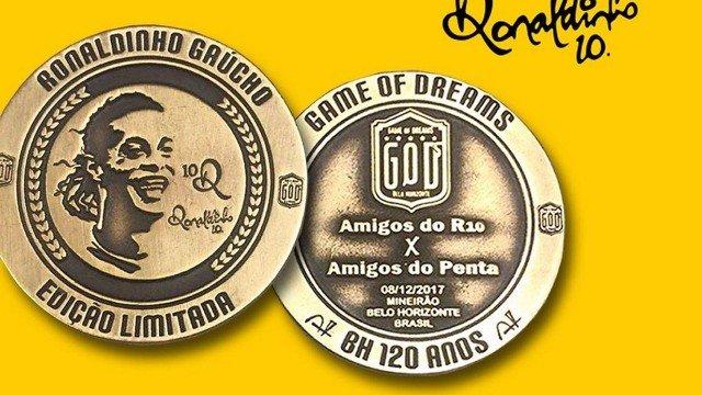 O amistoso será entre os Amigos do Ronaldinho e Amigos do Penta, já que meia conquistou o quinto título mundial da seleção brasileira na Copa do Mundo de 2002, na Coreia do Sul e Japão. Para quem quiser levar uma lembrança da partida, R10 mandou fabricar moedas que têm a sua foto e informações do jogo.