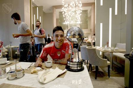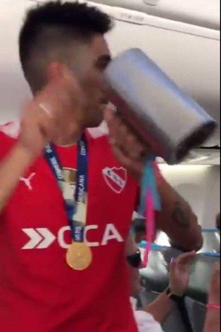 A delegação do Independiente retornou à Argentina na manhã desta quinta-feira, em voo fretado, para comemorar com a suta torcida a taça de campeão da Copa Sul-Americana de 2017. Em um vídeo compartilhado pelo Twitter oficial do clube, um dos atleta puxa o coro, em ritmo de cumbia, para todos celebrarem mais um troféu na estante já recheada da equipe, que é a maior vencedora da Copa Libertadores.