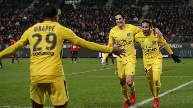 Fora das duas últimas partidas (por suspensão e depois liberado para viajar ao Brasil), Neymar voltou ao Paris Saint-Germain e compensou o tempo perdido. O craque brasileiro precisou de apenas quatro minutos para abrir o placar, deu assistências para Mbappé e Cavani ampliarem e marcou mais uma vez para fechar a goleada por 4 a 1 sobre o Rennes, que ainda perdeu um pênalti nos últimos minutos.