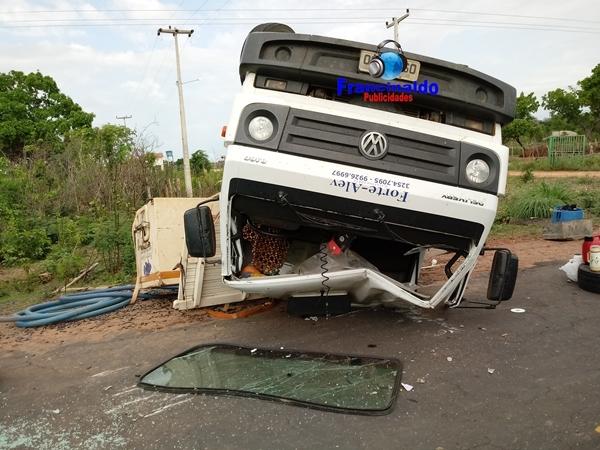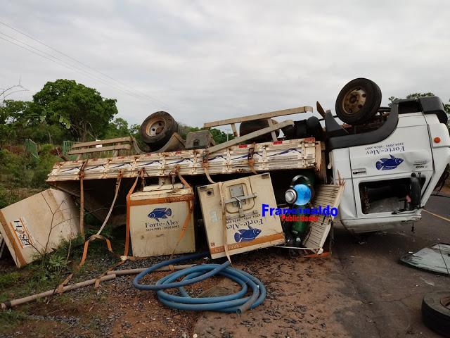 Segundo informações colhidas no local do acidente pela nossa equipe, o motorista Sr. Francisco, nos informou que uma das rodas traseira sacou fora fazendo com que o mesmo perdesse o controle da direção vindo a capotar o veículo que transportava um carga de peixes alevinos para Guadalupe.