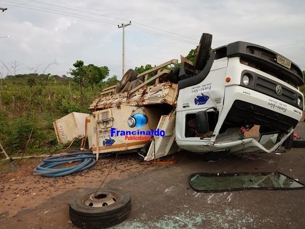 Um caminhão da empresa Forte-Lev, de Fortaleza Ceará, capotou na madrugada desta terça-feira 12, por volta das 04h30, em frente ao matadouro público de Guadalupe, na rodovia PI-135.