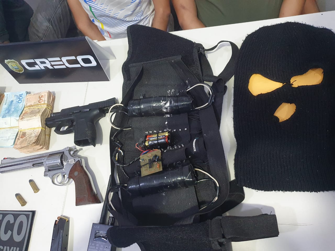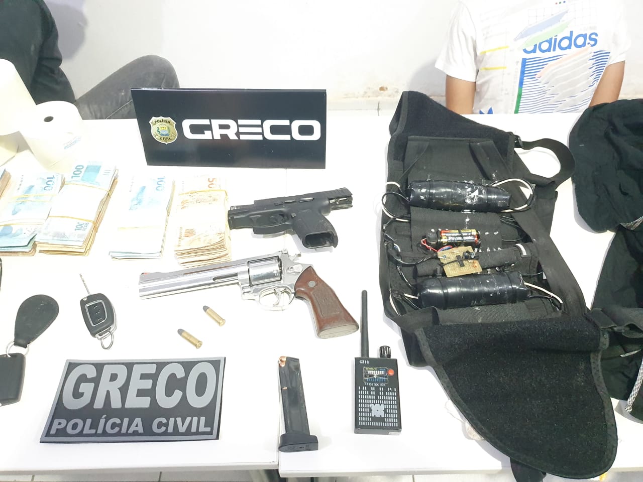 Acusados do sequestro foram presos ontem pelo GRECO / Crédito: SSP-PIApós trabalho minucioso de investigação, as equipes fizeram abordagem a um Polo na Avenida Joaquim Nelson onde foram presos os três primeiros investigados com o dinheiro do resgate. Continuando as investigações e, após abordagem e troca de tiros com os ocupantes de um HB20, efetuou-se as prisões dos demais investigados, bem como foi apreendido uma pistola 380, um revólver calibre 38, "falsos" explosivos que foram usados nos familiares do gerente, além de outros objetos e veículos usados na prática criminosa.