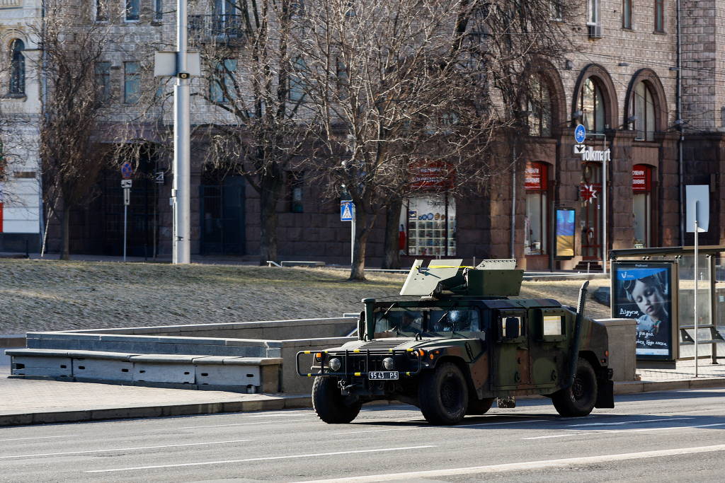 Veículo militar transita por Kiev - Foto: ReutersDezenas morreram em bombardeio a cidade de Kharkiv, diz dirigente de governo
