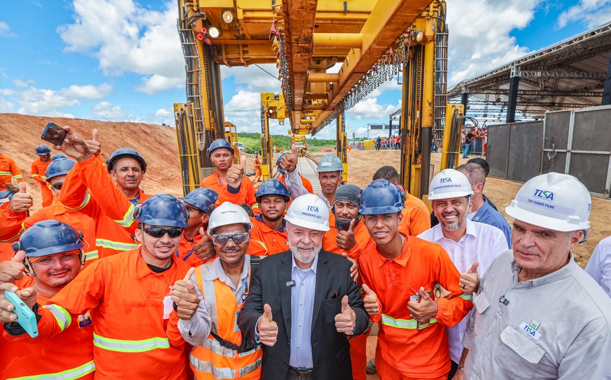 Lula com trabalhadores das obras da Ferrovia Transnordestina, no distrito Suassurana, Iguatu, no Ceará — Foto: Ricardo Stuckert / PREm agenda no Ceará, o presidente Luiz Inácio Lula da Silva prometeu, nesta sexta-feira (5), que a entrega das obras da ferrovia Transnordestina devem ocorrer no final de 2026, ou até o começo de 2027. Um dos objetivos é que a ferrovia possa transportar os grãos produzidos na área do Matopiba, que reúne os estados do Maranhão, Tocantins, Piauí e Bahia, até o Porto de Pecém no Ceará, a fim de baratear os preços dos produtos no Brasil.