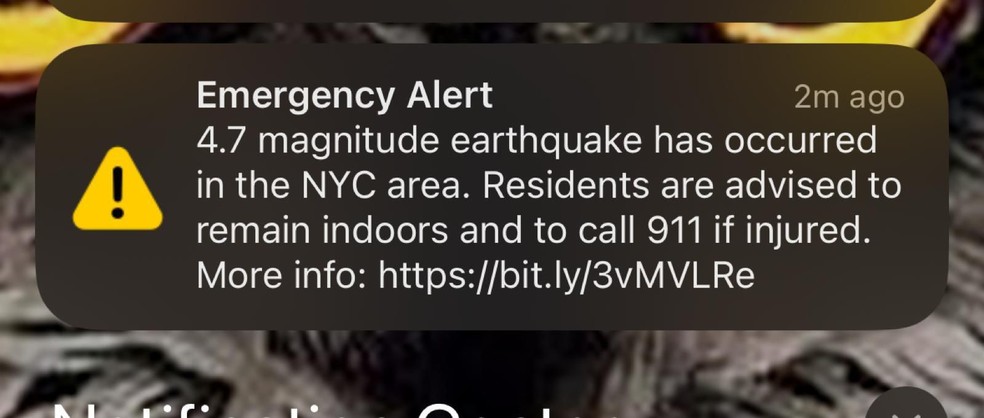 Alerta pede que moradores de NY fiquem em casa após terremoto — Foto: Reprodução