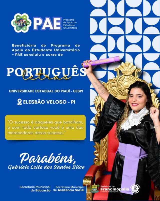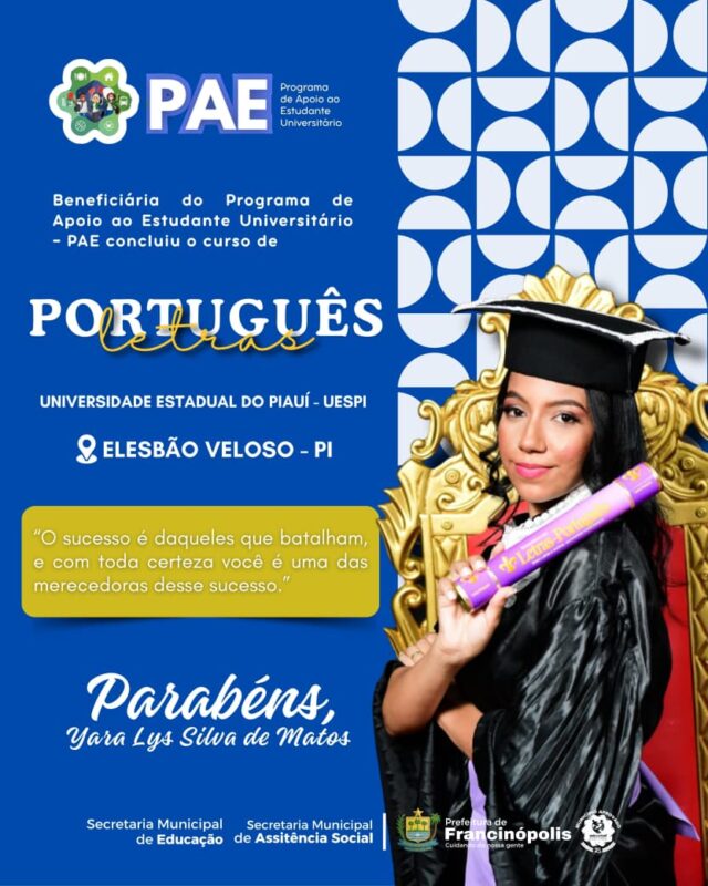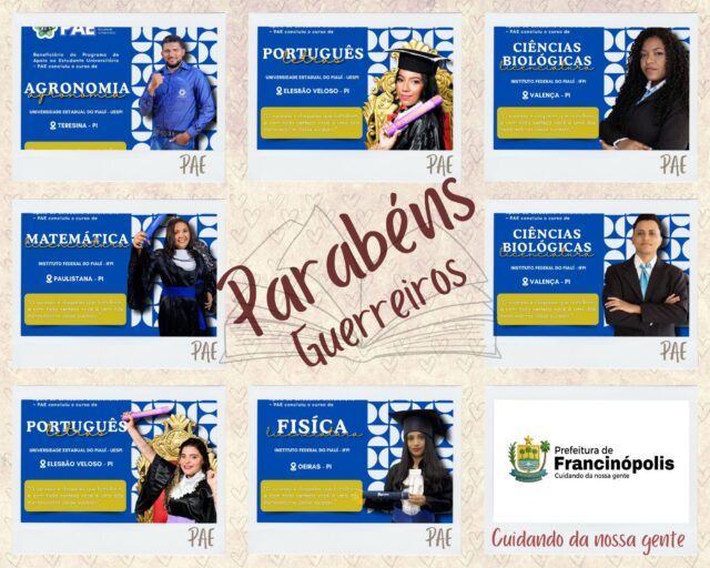“Com dedicação, esforço e o apoio do município, eles concluíram seus cursos de graduação e agora seguem prontos para novos desafios e realizações. Parabéns aos formandos por essa vitória! Que essa conquista seja apenas o começo de uma jornada de muito sucesso”, celebrou a administração municipal.