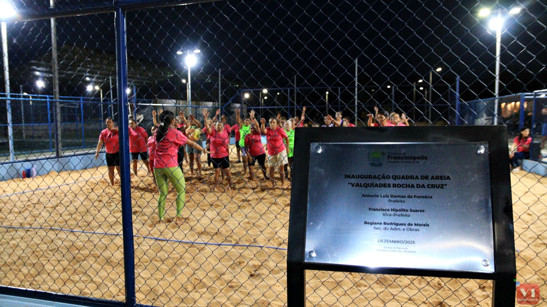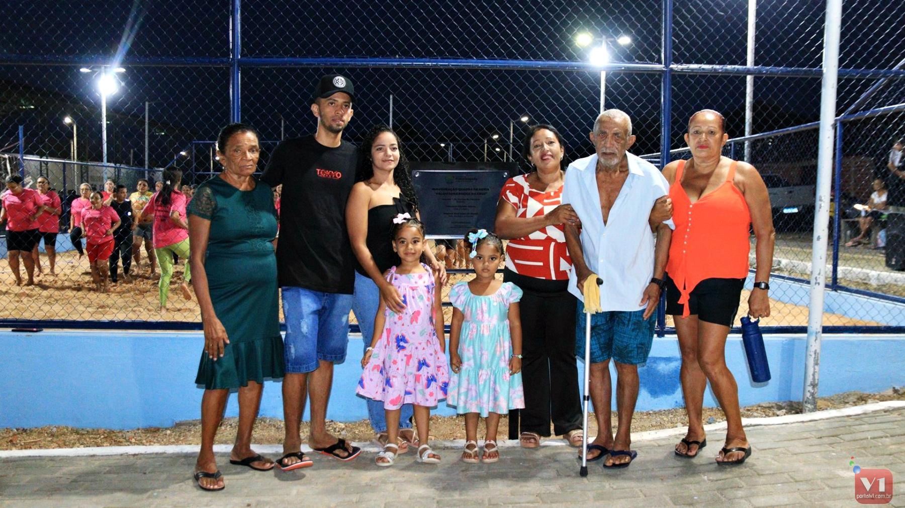 O novo equipamento uma quadra de areia recebeu o nome do desportista Valquiades Rocha da Cruz (em memoria). A homenagem emocionou familiares, que agradeceram o reconhecimento. Representando a família, a nora Ana Licia afirmou:
