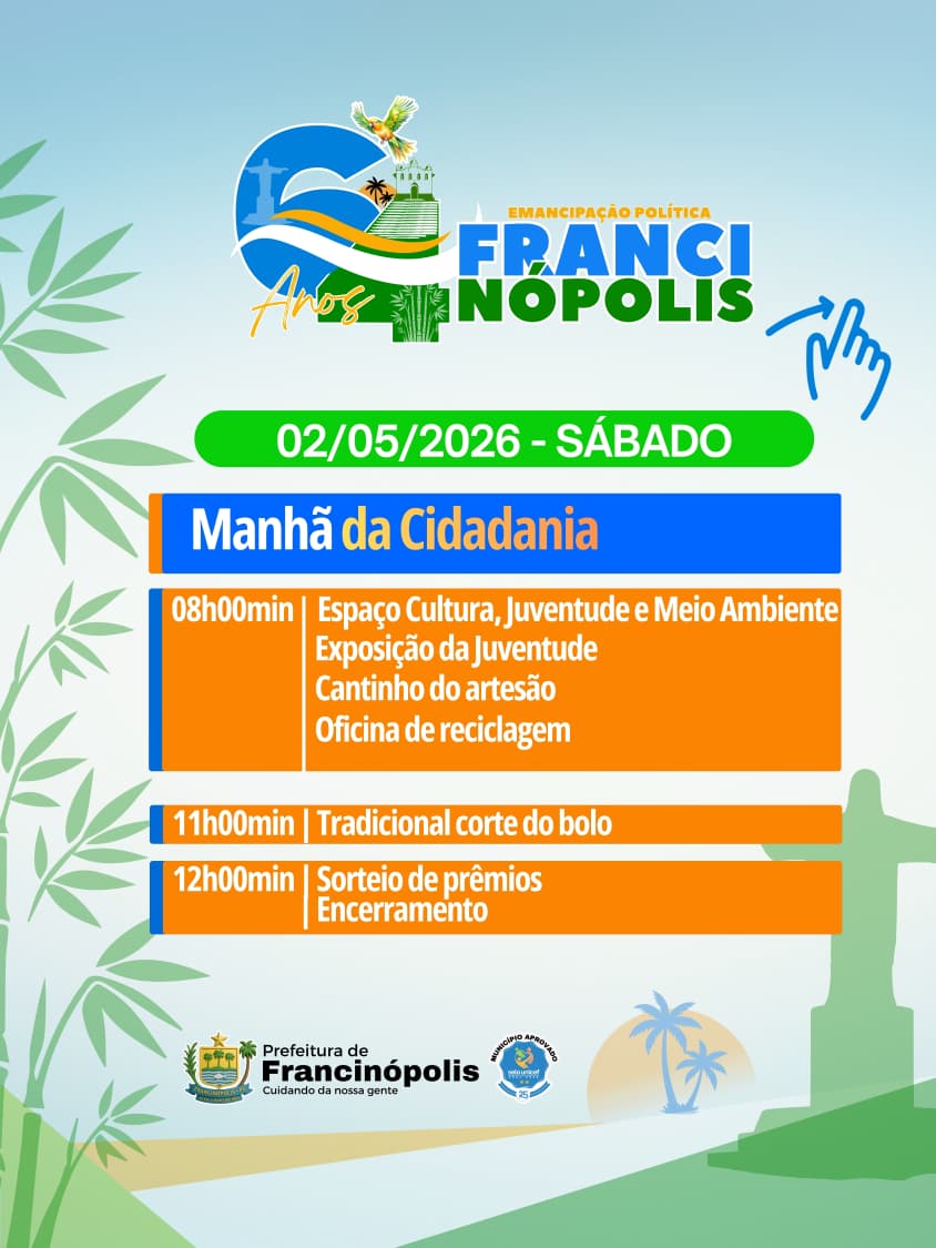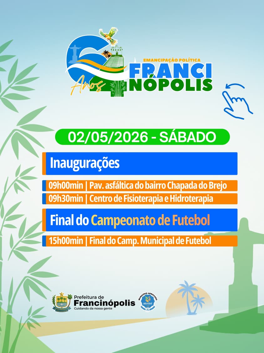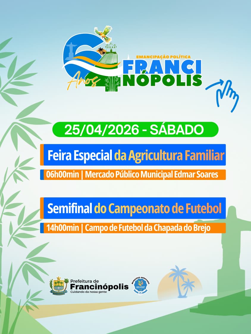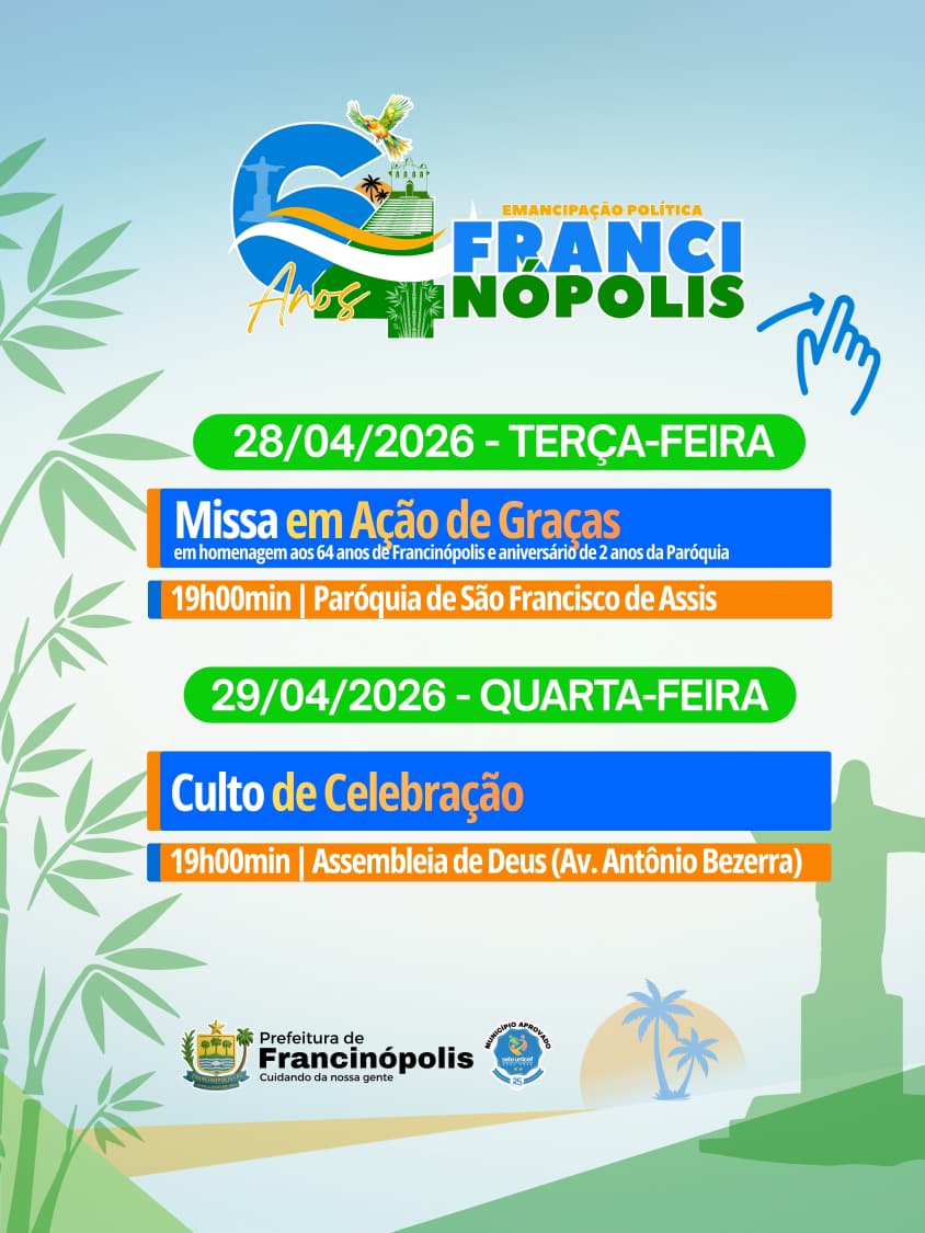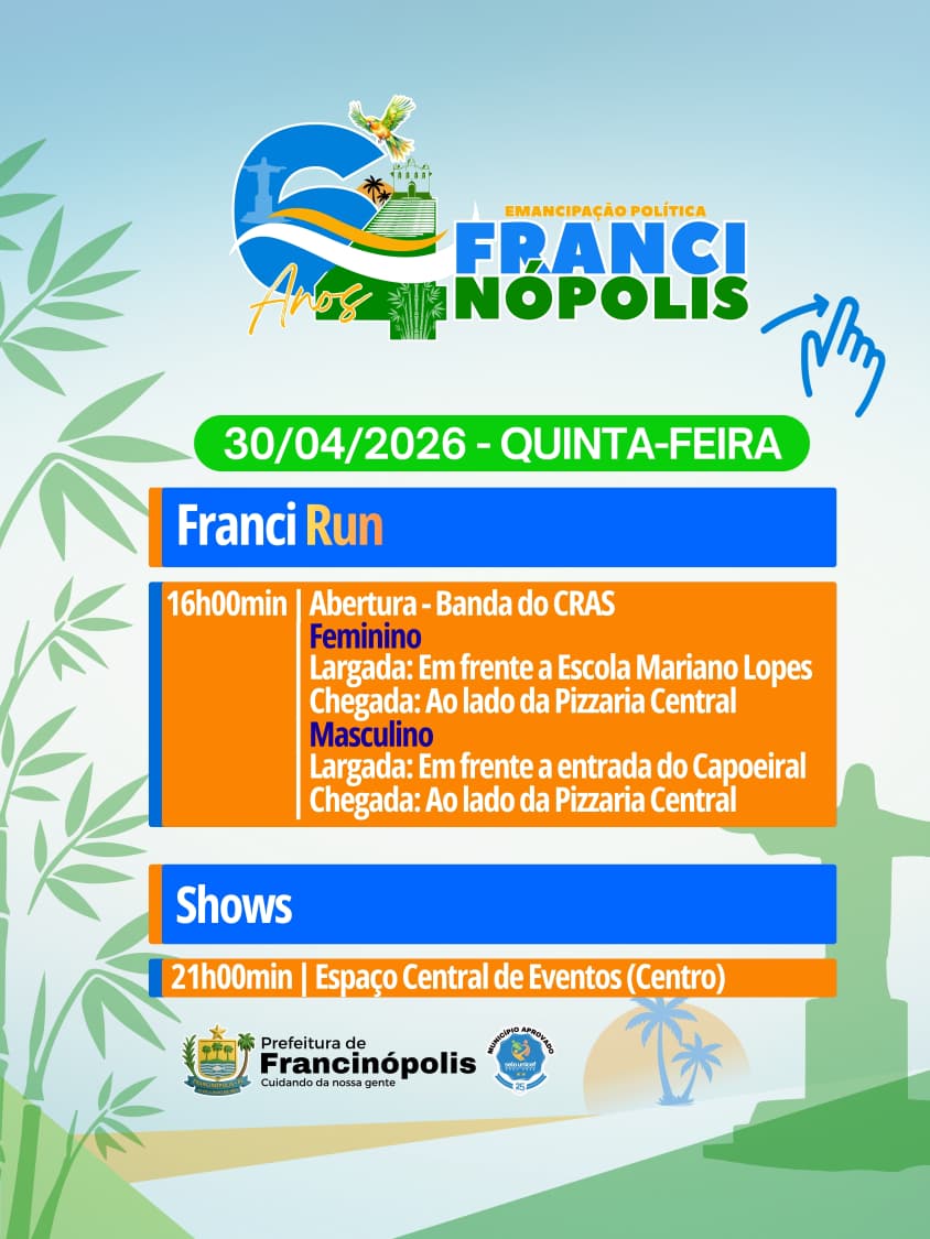 A cidade de Francinópolis, uma das mais prósperas da região valenciana, divulgou a programação oficial em comemoração aos seus 64 anos de emancipação política. A agenda preparada pela gestão municipal reúne uma série de atividades que contemplam esporte, fé, cultura, lazer e serviços para a população, envolvendo moradores e visitantes em vários dias de celebração.